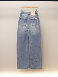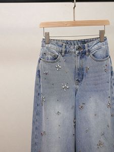 SP家秋季新款法式百搭千金风A字高腰重工镶钻水洗蓝阔腿牛仔裤女