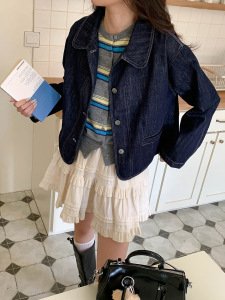 3th Morning 穿搭尖子生 韩系娃娃领明线设计牛仔外套ZY3438