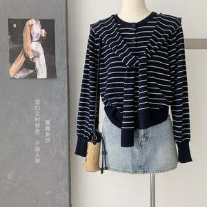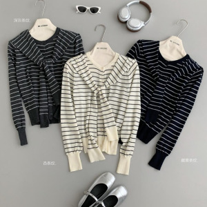 设计感小众极简韩系学院风减龄条纹披肩针织衫长袖两件套洋气