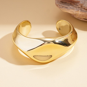 欧美夸张光面褶皱不规则几何开口手镯个性冷淡风小众高级感手饰女