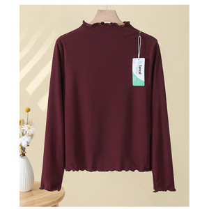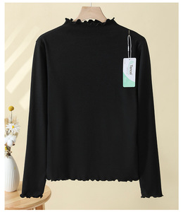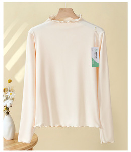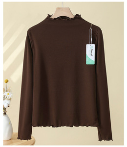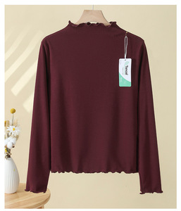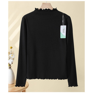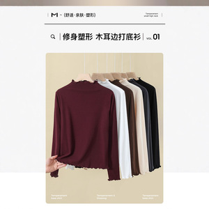 木耳边半高领打底衫秋冬保暖修身内搭长袖双面磨毛高级感软糯上衣