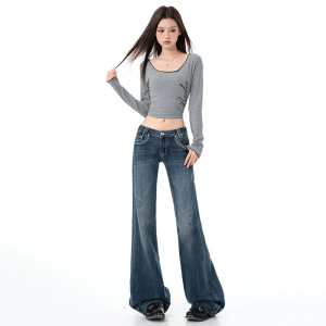 美式低腰辣妹微喇牛仔裤女款秋季新款设计感宽松显瘦不贴腿喇叭裤