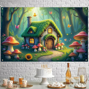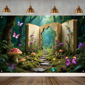 跨境新款 魔法森林背景布生日派对照相亭装饰横幅 生日横幅用品
