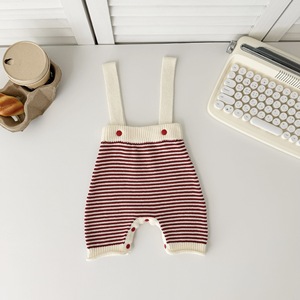 ins热卖春秋婴幼儿背带裤+上衣套装男女宝宝纯棉经典条纹两件套