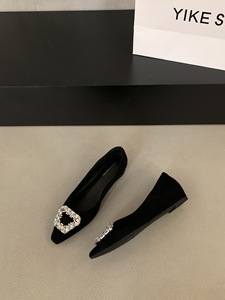 FengLiDa内增高黑色绒面水钻单鞋女鞋子2025新款秋气质尖头通勤鞋