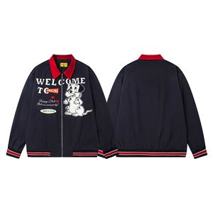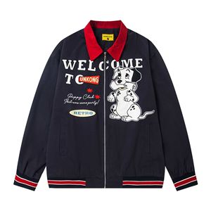 美式复古趣味斑点狗贴布绣撞色翻领夹克男女情侣bf宽松休闲外套