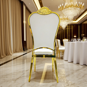镀金酒店宴会婚礼宴会厅元宝餐椅家用金属靠背椅Weddingchair现货