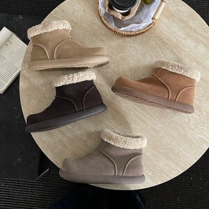 羊毛雪地靴女士2025新款真皮丑萌短筒加绒加厚保暖棉鞋冬季鞋桑坡