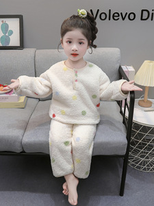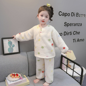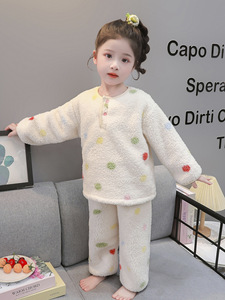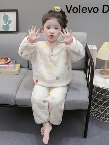 女童珊瑚绒睡衣秋冬季2025新款加厚女孩宝宝法兰绒儿童卡通家居服
