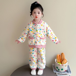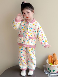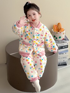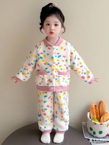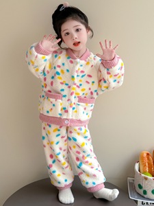 女童睡衣套装秋冬款2025新款女宝宝法兰绒家居服儿童冬装居家衣服