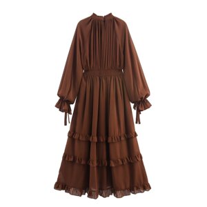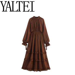 YALTEI跨境速卖通ins欧美外贸 女装 法式多层荷叶边饰收腰长裙