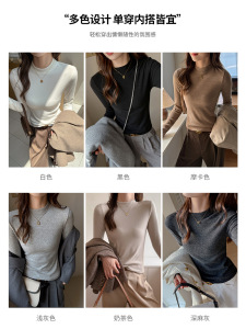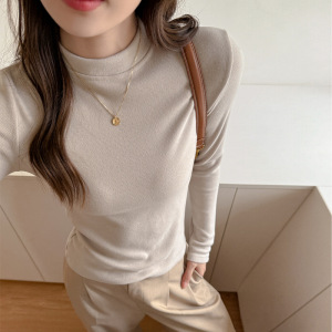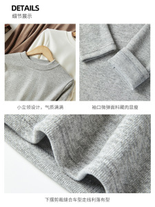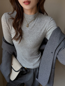 灰色仿羊绒立领针织打底衫女内搭秋冬季正肩t恤高级感可外穿上衣