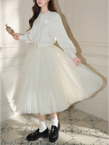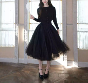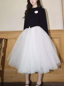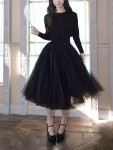 avenamant/法式网纱半身裙中长裙宫廷风古典a字蓬蓬裙纱裙女