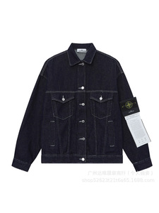 跨境石头岛经典复古水洗深蓝色宽松男女外套徽章纯色百搭牛仔上衣