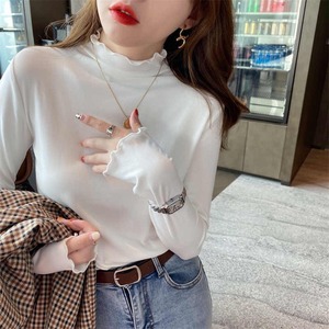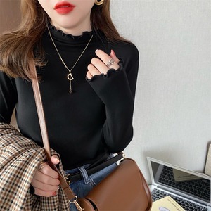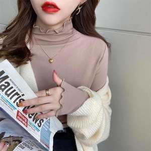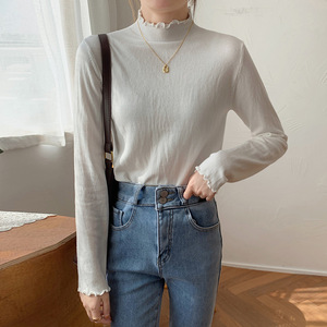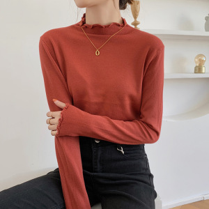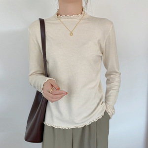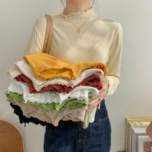 半高领内搭T恤女长袖秋冬洋气百搭修身针织打底衫木耳边上衣