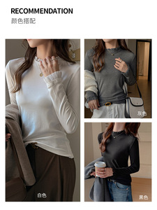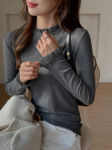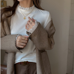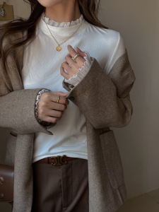 秋冬季莫代尔花边立领长袖t恤女内搭设计高级感打底衫可外穿上衣
