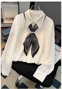 白色长袖衬衫女秋季穿搭2025新款polo领丝巾上衣女士宽松气质小衫