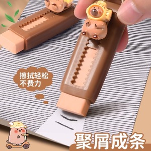 卡通橡皮擦无屑超干净小学生用卡皮巴拉儿童不留痕按动推拉铅笔擦