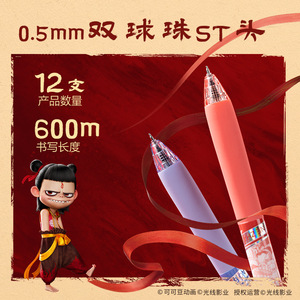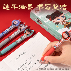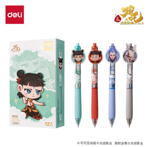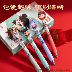 得力NZ009哪吒速干按动学生中性笔0.5双珠ST头哪吒敖丙Q版写字笔