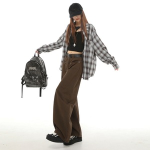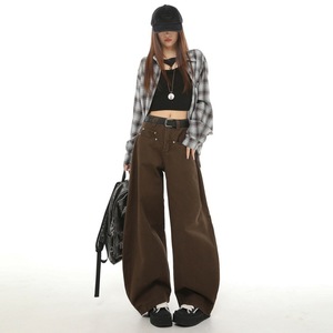 新中式直筒牛仔裤女秋季新款高街辣妹宽松直筒慵懒垂感阔腿拖地裤