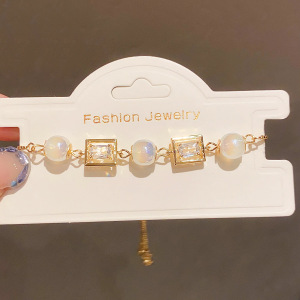 法式锆石珍珠方形人鱼姬手链轻奢高级感手环复古优雅气质手饰女