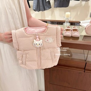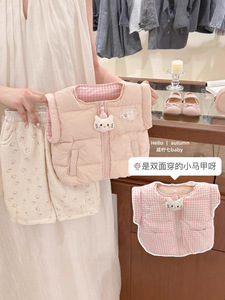 女童保暖棉马甲套装双面穿秋冬儿童宝宝坎肩背心外套绒裤子两件套
