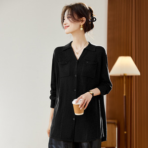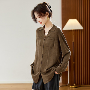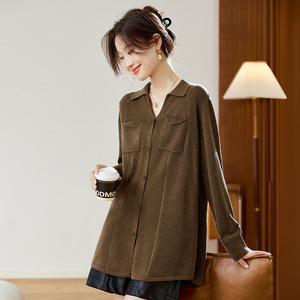 2025新款女装长袖针织衫春秋上衣翻领毛衣洋气早秋装宽松开衫小衫