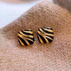 秋冬复古黑金豹纹圆形方形耳钉轻奢高级感气质大气时尚百搭耳环品