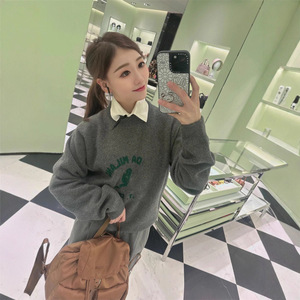 2025秋季新款南油pra修身显瘦简约甜美学院刺绣字母圆领针织毛衣