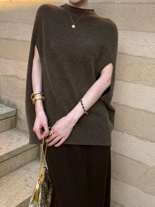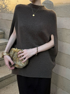 槿一【身轻燕】斗篷无袖法式针织衫女秋半高领羊毛混纺上衣高级感