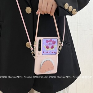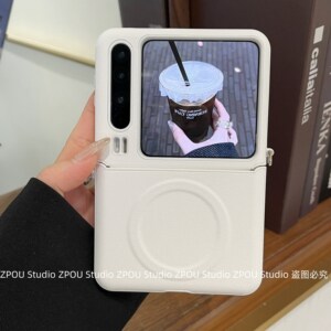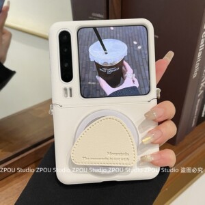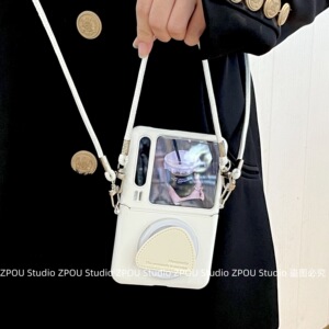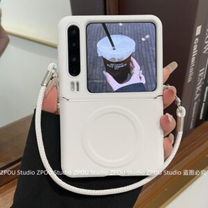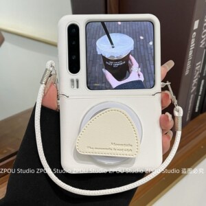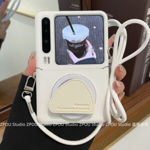 适用华为PuraX典藏折叠p50pocket2手机壳护轴皮质高级白磁吸支架MagicVFlip斜挎绳小米MIXFlip2三星ZFlip765
