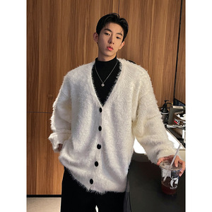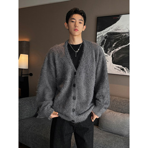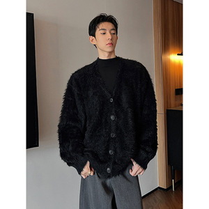 毛绒柔软舒适简约开衫毛衣巴黎街头时尚高级感潮搭男士休闲潮上衣