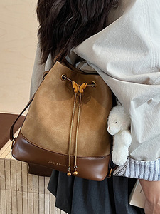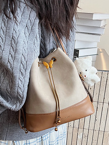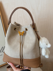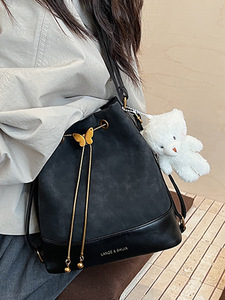 水桶包单肩斜挎包包女2025秋季新款洋气小众女包抽绳两用小型背包