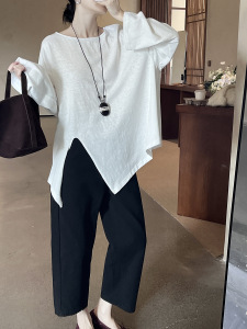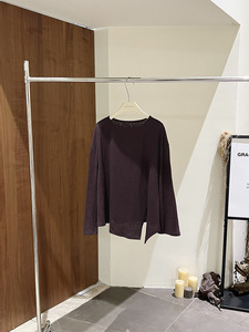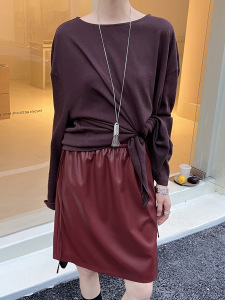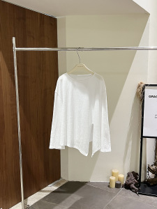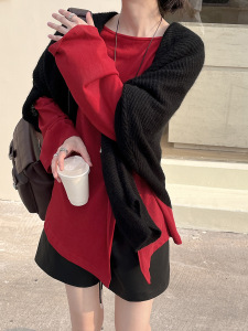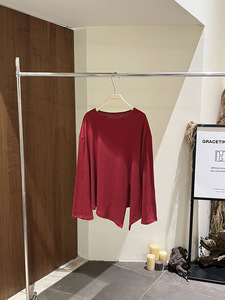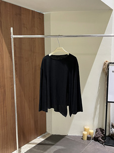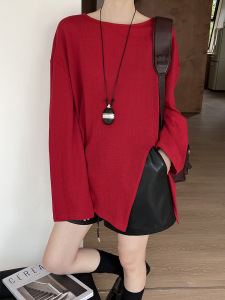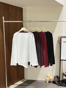 初打十三行秋季新款法式肌理感前开衩纯色两穿圆领长袖T恤女TB887