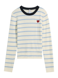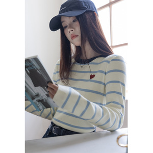 HUIXI绘系「秋日慵懒风」条纹针织衫女秋季内搭打底修身长袖上衣