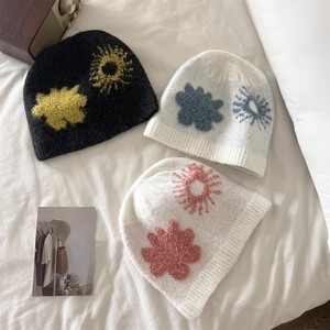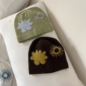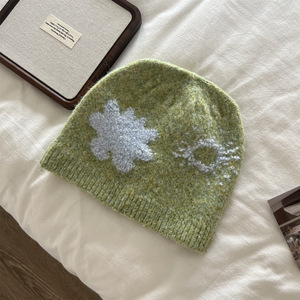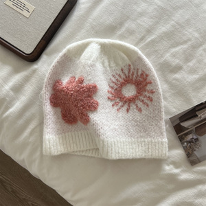 韩国ins复古提花毛绒针织帽女秋冬可爱花朵保暖百搭包头护耳冷帽