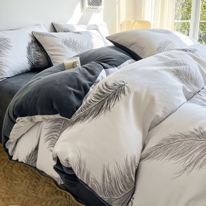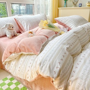 ins全棉纯棉牛奶绒床上四件套冬季A&B面加厚珊瑚绒被套床单三件套