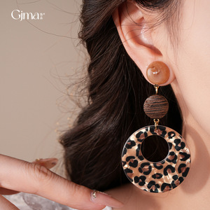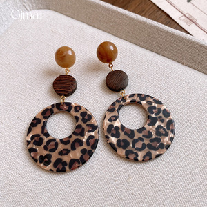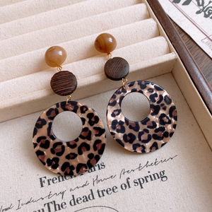 银针欧美跨境复古圆形豹纹树脂耳环轻奢高级感耳钉时尚个性耳饰女