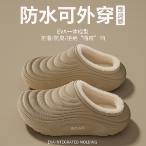 防水棉拖鞋女韩版情侣外穿防滑居家保暖加绒厚底拖鞋秋冬季月子鞋