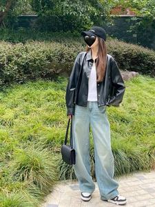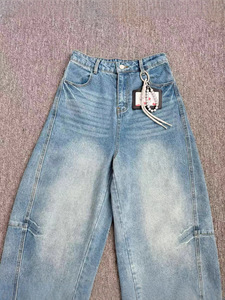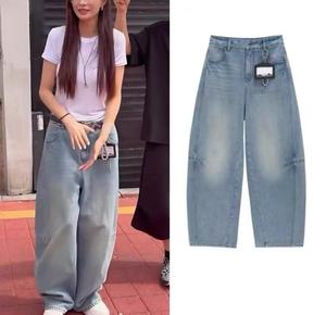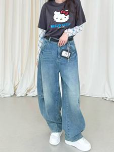 沈梦辰明星同款美式复古弯刀牛仔裤女猫咪口袋街头宽松显瘦阔腿裤