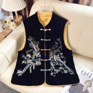 重工刺绣复古盘扣国风马甲女新中式改良唐装马夹秋装立领无袖外套