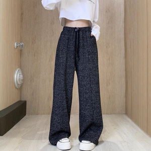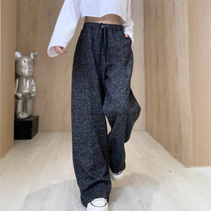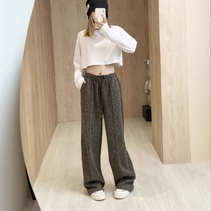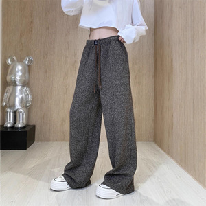 2025秋季新款南油m6减龄少女风气质优雅抽绳松紧腰撞色印花休闲裤