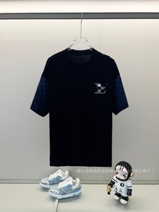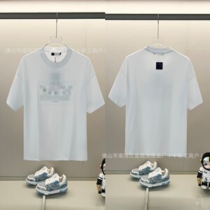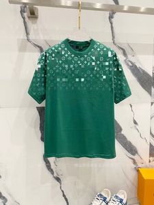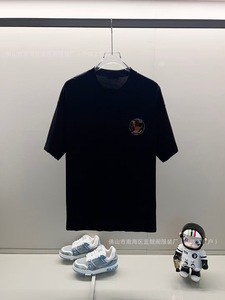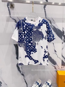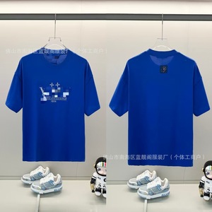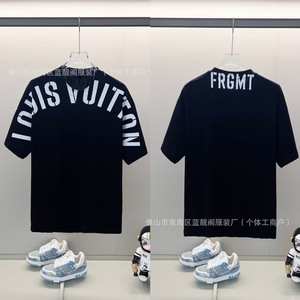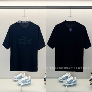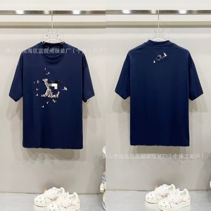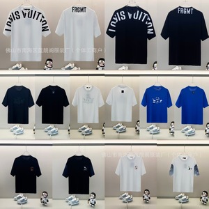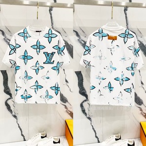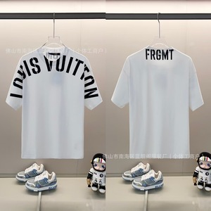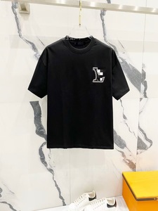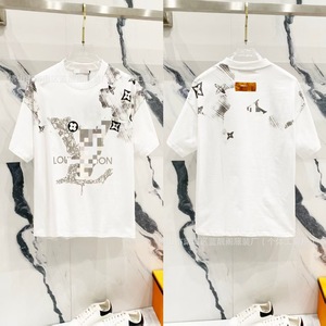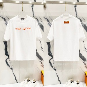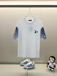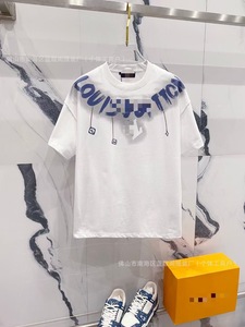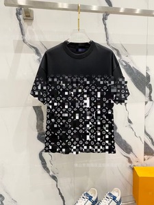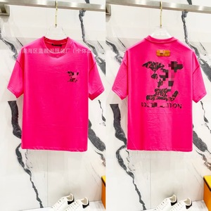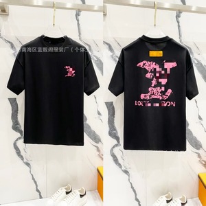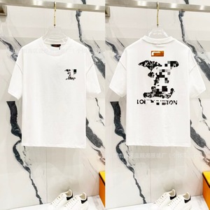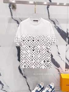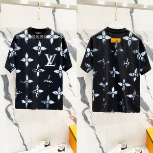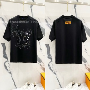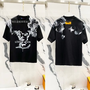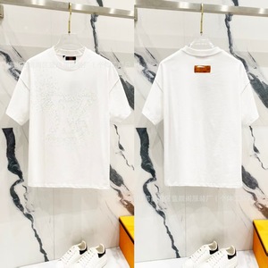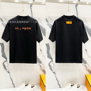 跨境奢潮驴家高品质L满印字母短袖潮牌外贸经典款圆领男女宽松T恤