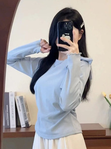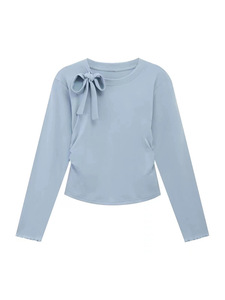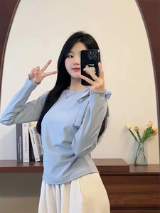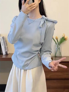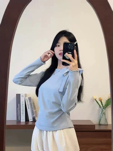 韩系蝴蝶结长袖t恤2025秋季新款内搭打底衫正肩短款显瘦收腰上衣