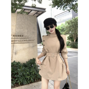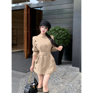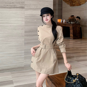 昕可达 布拉格广场 英伦风卡其侧门襟风衣收腰外套上衣