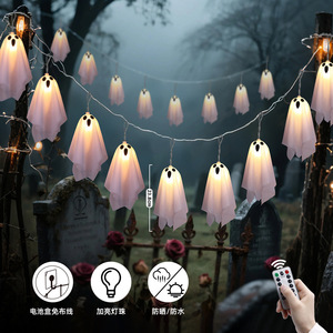 万圣节装饰南瓜幽灵灯串彩灯鬼节酒吧餐厅氛围灯场景布置挂饰绢花