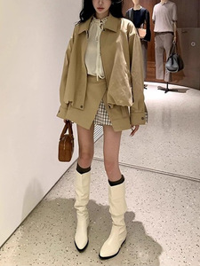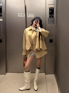 Barbchiil花苞夹克短外套女2025秋季新款卡其色套装不规则半身裙