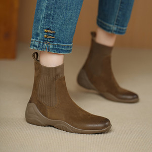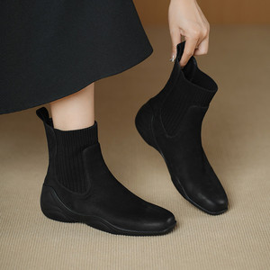 英伦风真皮马丁靴女款秋冬短靴小坡跟女靴瘦瘦靴软底裸靴切尔西靴