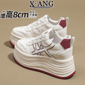 牛皮小白鞋松糕厚底增高8cm小个子女鞋2025新款秋季休闲运动板鞋