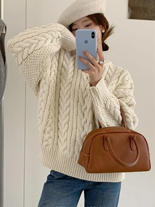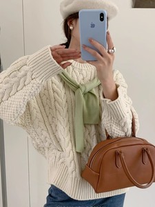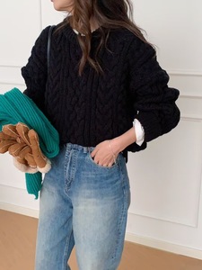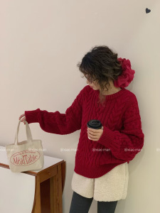 韩代同款高品质八奶粗棒针麻花毛衣女秋冬宽松慵懒风针织衫上衣厚